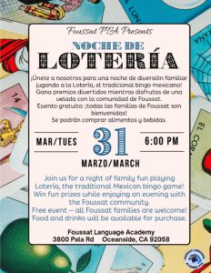 • Venue : Foussat Language Academy 3800 Pala Rd Oceanside, CA 92058